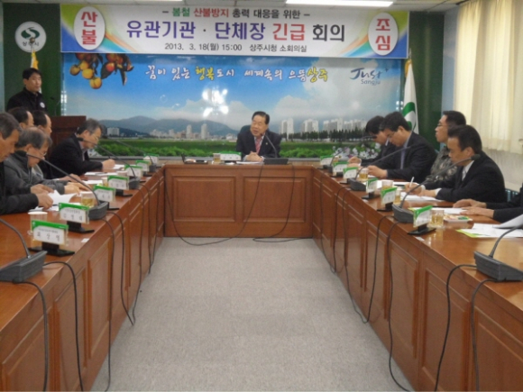 박희룡 상주경찰서장 등 유관기관․단체장 13명이 참석한 이날 회의에서 산불방지 특별대책과 함께 각 유관기관․단체는 산불방지에 적극 협조하고 예방활동에 총력을 기울이기로 협의했다.