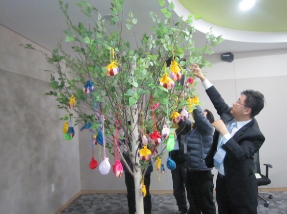 특히 이날 관심을 끌었던 과정은 감사트리 제작으로 직원들은 트리에 달린 ‘행복주머니’를 이용해 각자 원하는 소원을 소원지에 작성하거나 평소 감사함을 전하지 못한 주변 사람에게 감사편지를 쓰며 트리를 완성해가는 즐겁고 유익한 시간을 가졌다.