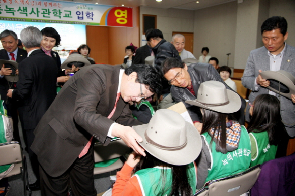 안동녹색사관학교(학교장 최윤환) 입교식이 3월 23일 안동시청 대회의실에서 열렸다. 녹색사관학교는 세상을 녹색으로 변화시키는 미래의 녹색 지도자를 꿈꾸는 안동지역 초등학교 4, 5, 6학년 40여명이 1기 생도로 입교해 주말을 이용해 연 14회에 걸쳐 인성교육과 숲 체험, 생태체험, 문화유적지 답사 등의 교육프로그램을 운영한다.