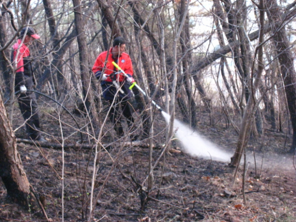 이날 산불은 이모씨(70)가 과수원에 설치된 호스를 녹이기 위해 불을 피웠다가 불씨가 산으로 번져 임야 0.05ha를 태우고 출동한 산림청 헬기와 산불진화대원에 의해 20분 만에 진화됐다.