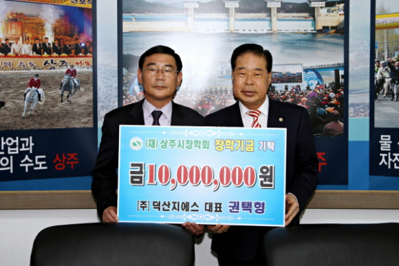(주)덕산지에스(대표 권택형)는 3월 28일 지역의 청소년들이 새로운 꿈과 희망을 갖고 학업에 집중할 수 있도록 재단법인 상주시장학회(이사장 성백영)에 1,000만원의 장학기금을 기탁하였다.