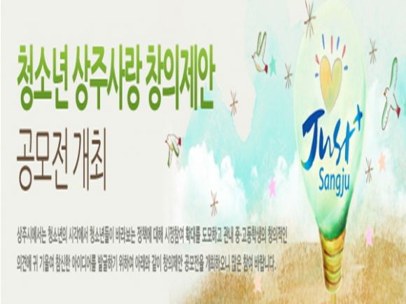 상주시는 관내 청소년들의 무한한 창의력을 바탕으로 참신한 정책아이디어를 발굴하는 등 시정에 대한 관심과 시정참여 확대를 위해 4월 1일부터 5월 31일까지 2개월간 “청소년 상주사랑 창의제안” 공모전을 실시한다.