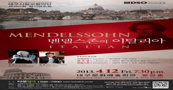 대구시향 제394회 정기연주회 “멘델스존의 이탈리아” 2013. 4. 12(금) 19:30 대구문화예술회관 팔공홀
