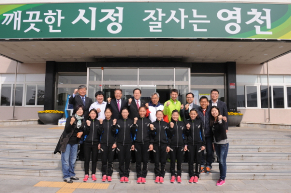 몽골 여자고등부 마라톤팀은 3월30일 경주에서 열린 코오롱 고교 구간 마라톤 대회에 참가 한 후 영천시청을 방문해 스포츠를 통한 두 지역간의 우의를 다졌다.