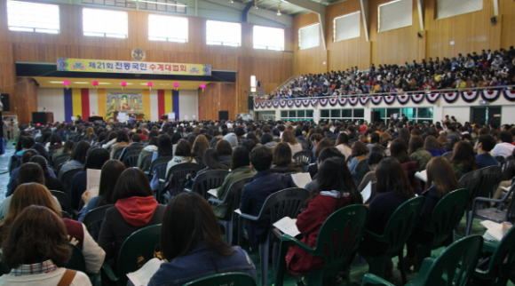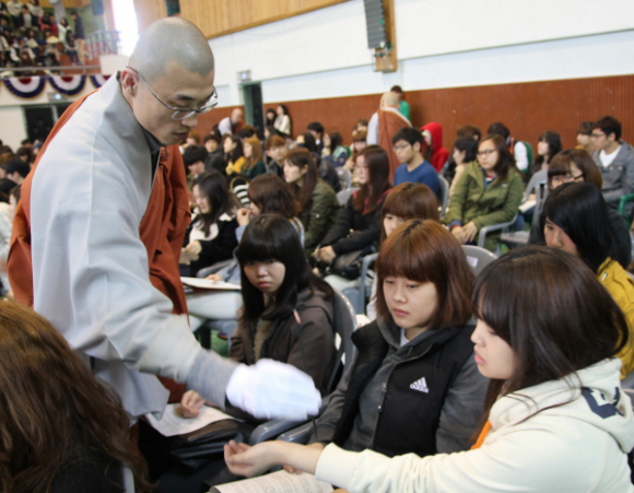 동국대학교 경주캠퍼스(총장 이계영) 정각원(원장 성본 스님)은 지난 2일 11시 교내 문무관에서 재학생, 일반 신도, 교직원 등 1,600여명이 참석한 가운데, 불기2557(2013)년 제21회 전 동국인 수계대법회를 봉행했다.