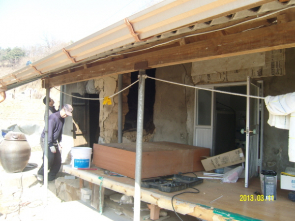 이 주택은 60년대 지어진 흙집으로 중심축이 약해 주택의 왼쪽이 이미 무너진 상태며, 할머니가 거주하는 방쪽으로도 붕괴의 위험이 있어 지지대를 세우고 금이 간 벽체에 벽돌을 덧쌓아 보수하게 됐다.