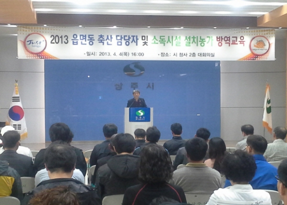 상주시에서는 4월 4일 시청 대회의실에서 가축방역소독시설 대상농가와 읍면동 축산담당자를 대상으로 방역교육을 실시했다.