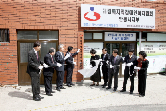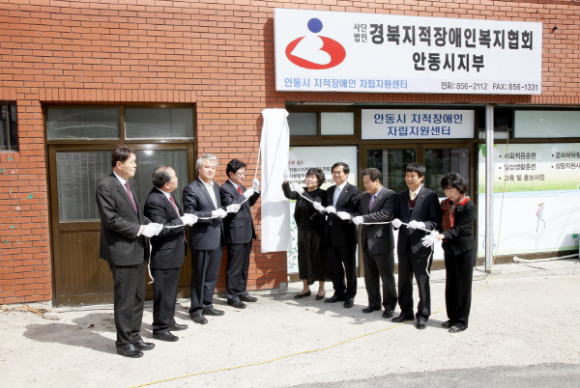 안동시지적장애인자립지원센터 개소식이 9일 안동시 안기동에서 열렸다. 이날 지적장애인자립지원센터 개소에는 권영세 안동시장과 김근환 시의회의장, 그리고 경북지적장애인복지협회 변단흠 회장과 도내 각 지부장을 비롯해 안동시 각 장애인단체 대표와 시민 등 60여명이 참석했다.
