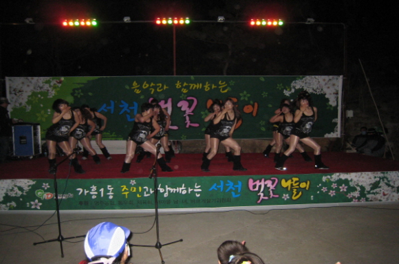 서천변 야외무대에서 열리는 공연행사는 식전행사로 풍물, 영주 탑댄스 스쿨 어린이댄스팀 공연이 있으며, 저녁7시부터는 그동안 가흥1동 주민자치센터에서 배우고 익힌 교육생들의 통기타, 스포츠댄스, 주부방송댄스팀의발표와 올해 위대한 탄생3에 출연하여 영주시를 빛낸 이형은양의 무료공연등이 다채롭게 펼쳐지며 저녁 9시부터는 제민루에서 출발하여 제2가흥교까지 1.5㎞ 거리를 가족과 함께 벚꽃길 걷기 행사도 펼쳐지며 시민들에게는 음료제공과 먹거리 부스를 운영한다.