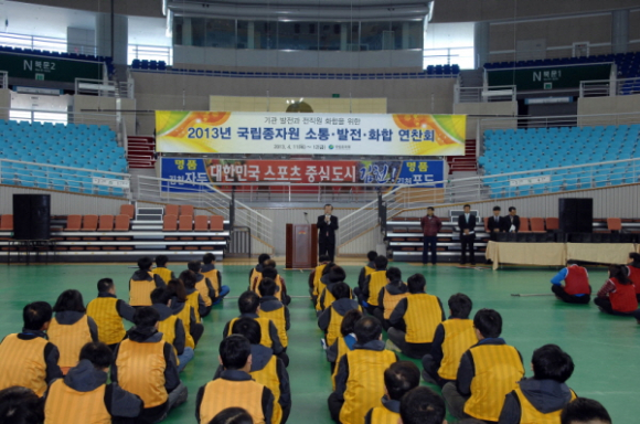 국립종자원(원장 신현관)은 지난 11일부터 12일까지 1박2일 일정으로 김천파크호텔과 스포츠타운내 실내체육관에서 전체 임직원이 참여한 가운데 『2013년 직원 소통·발전·화합 연찬회』를 가졌다.