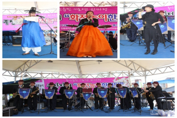 풍산장터 화전놀이 한마당 행사는 대금공연(임성국), 국악공연(오민정), 성악공연(팝오케스트라), 색소폰공연(뮤직패밀리), 지역 가수공연(김이난), 이벤트클럽(권오용 대표)등의 재능기부를 통한 지역 인재들의 순수 봉사로 공연이 이루어져 좋은 귀감이 되었다.