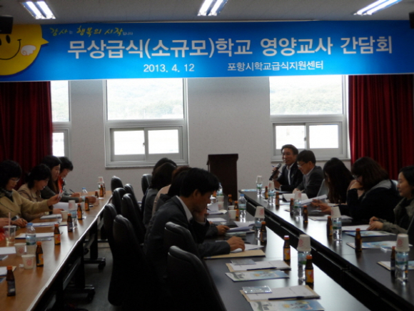 이번 간담회에는 포항시학교급식지원센터장, 포항시 및 교육지원청 관계자, 무상급식이 시행되는 있는 관내 초중학교 영양교사 등 30여명이 참석 했다.