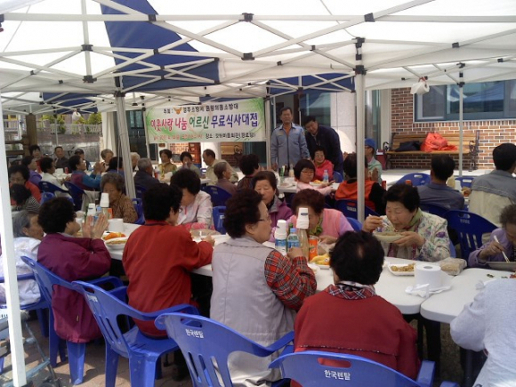 |  | | | ⓒ GBN 경북방송 | | 용황의용소방대(대장 공영석, 54세)는 4월 14일(일) 오전 11시 갓뒤마을 회관에서 이웃사랑 나눔의 일환으로 150여명의 어르신들에게 무료식사를 제공했다. 이날, 박병훈 도의원, 윤병길 ․ 김성규 시의원, 황성동장 및 자생단체장 및 대원들이 참석했으며, 황성경로당을 포함한 갓뒤마을 주변 경로당 6개소 150여명의 어르신들을 모신 중식지원 행사는 용황의용 소방대가 매년 실천하는 사랑 나눔으로 대원 30여명이 직접 만든 자장면 및 떡, 과일, 다과 등을 푸짐하게 대접함으로써 소외될 수 있는 어르신들에게 따뜻한 중식 제공은 물론 더불어 살아가는 사회분위기를 조성하고 경로효친사상을 몸소 실천하는 좋은 본보기가 되어 타의 귀감이 되고 있다. 특히, 황성경로당 외 6개소 경로당에 8대의 소화기를 구입해 기증하고, 어르신들로 하여금 화재예방에 대한 경각심을 일깨워주었다.