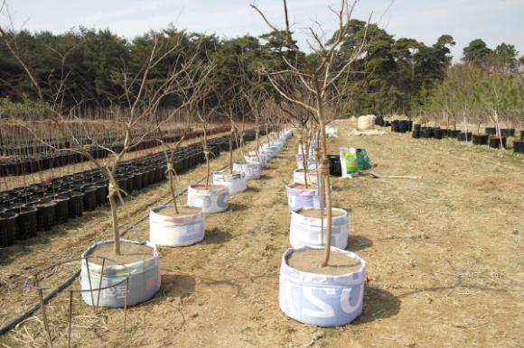 이번에 제작하고 있는 수목화분은 폐 현수막을 지름 50cm, 높이 50cm와 지름 30cm, 높이 50cm 원통형의 두 종류로 제작해 화분 내에 거름을 넣고 블루베리, 체리, 조경수 묘목 등을 식재해 노지에서 재배하는 용도로 쓰이며, 기존 농가에서 활용하던 용기백은 중국에서 수입한 제품으로 개당 2천원 정도에 구입해 사용해 왔다.