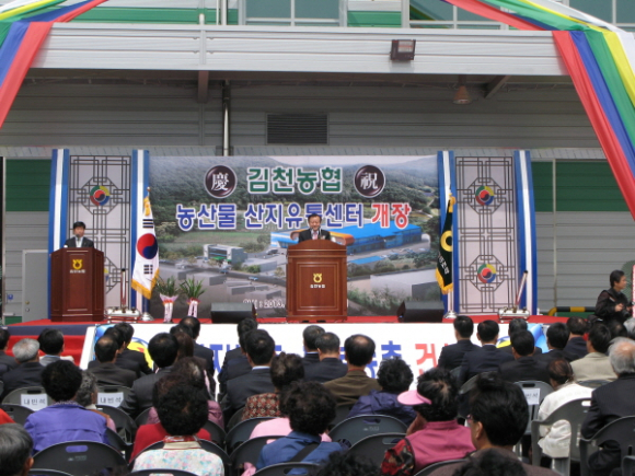 이날 개장식에는 박보생 김천시장을 비롯 지역의 기관단체장과 농협 관계자 그리고 김천농협 조합원 등 1,000여명이 참석하여 농산물 산지유통센터 개장을 축하했다.