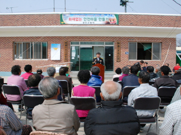경주소방서(서장 김학태)는 18일 경주시 내남면 명계3리 굴성마을회관에서 이종근 경주시의원, 현재율 내남면장 및 마을주민등 60여명이 참석한 가운데 화재없는 안전마을행사를 실시했다.
