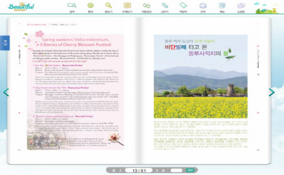 올 해부터 새롭게 바뀐 ‘아름다운 경주이야기’는 기존 사진을 활용한 화보형식의 표지에서 아기자기한 일러스트를 가미하고, 봄 호의 특성을 살려 벚꽃을 주 이미지로 사용하는 등 변화를 시도했다.
