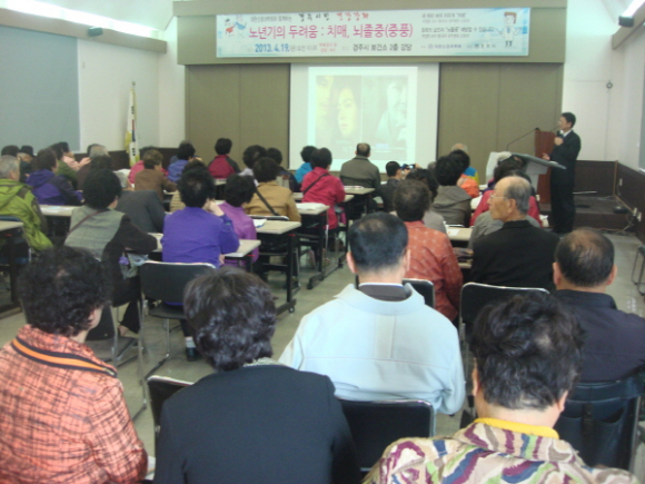 |  | | | ⓒ GBN 경북방송 | | 경주시보건소에서는 치매의 위험이 높은 60세 이상 노인 150여명을 대상으로 4월 19일 오전10시 30분부터 대한신경학회와 연계하여 시민건강강좌를 실시하였다.