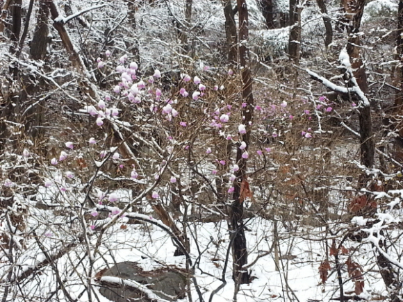 온 자연이 봄빛으로 울긋불긋하지만 눈이 내리기도 했습니다. 매화, 개나리, 벚꽃은 이미 지고 다음 타자인 복사꽃, 살구꽃, 아기진달래가 앞다투어 나오려다가 꽃샘추위에 발목을 잡혀 주춤하고 있습니다.