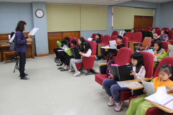 |  | | | ⓒ GBN 경북방송 | | 금장초등학교(교장 서정애)에서는 다양한 문화 예술 체험활동을 통하여 자신의 소질을 계발하는 계기로 삼고, 아름다움을 지향하는 고운 정서를 길러 학교 폭력을 예방하고자 경주시립합창단원과 MOU를 체결하여 2013년도 예술 동아리 금빛 합창단을 조직했다. 3월 20일 수요일 3~6학년 아동을 대상으로 자유곡 1곡과 지정곡(고향의 봄, 우리의 소원은 통일, 섬집 아기)을 정하여 오디션을 통해 20명의 아동을 선발했고 4월 11일 2차 추가 선발을 통해 총 30명의 아동이 금빛 합창단원으로 활동하게 되었다. 합창부 연습은 교육과정 및 방과 후 학교를 활용해 공교육으로 운영이 되는데 금요일 4시부터 이루어진다. 소프라노, 알토, 메조 소프라노 3개의 파트를 나누어 합창의 기본자세 및 음정, 박자를 익혀 함께 합창해 봄으로서 합창에 대한 흥미도 높이고 음악적 기능을 연마해 간다. 10월에 열리는 ‘제 1회 경주합창 페스티발’과 및 ‘창의․인성 페스티발’ 참가를 목표로 합창단 연습을 통해 창의력을 높이고 함께 하는 활동을 통해 바른 품성과 협동심을 함양하는 더불어 학교활동에 대한 애착과 활동하면서 느끼는 자부심으로 인해 자심감을 높이는 금장초등학교 어린이로 커가길 바란다. |
