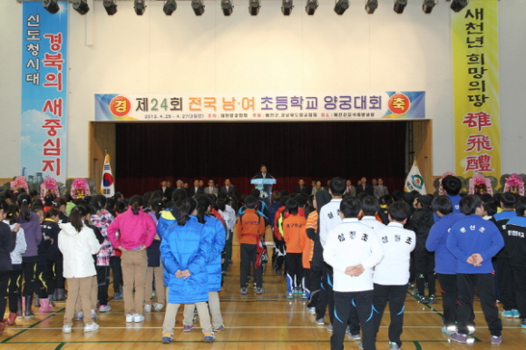 제24회 전국 남․여 초등학교 양궁대회와 제47회 전국 남여(중등부)양궁 종별 선수권 대회가 25일 예천진호국제양궁장에서 화려한 막을 올렸다.