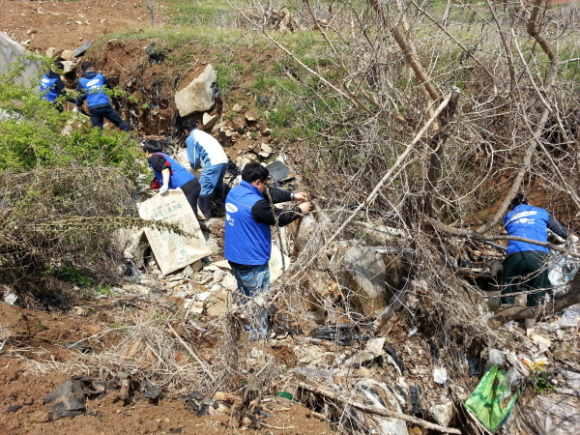 수륜면 송계리에서는 24일 이른 아침부터 밝으내마을 계곡 및 송계천에서 마을주민과 삼성생명 대구법인지역단 50여 명이 참가하여 마을 청소를 대대적으로 전개했다.