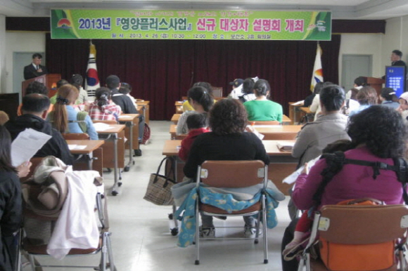 김천시(시장 박보생)는 4월 26일 보건소 3층 회의실에서 2013년 영양플러스사업 신규 수혜 .대상자 41가구 63명을 대상으로 사업 설명회를 개최했다.