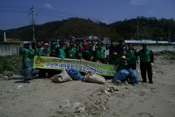 구성면 새마을회는 5월 10일부터 개최되는 도민체육대회를 맞아 우리시를 방문하는 선수단 임원, 가족 등 손님에게 김천에 대한 좋은 인상을 심어 주기 위해 지난 4월 25, 26일 연도변 꽃심기 작업을 실시한데 이어 4월 27일에는 감천변 정화활동을 실시했다.