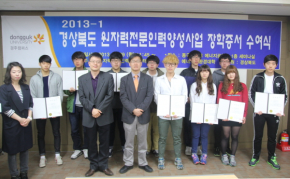 동국대학교 경주캠퍼스(총장 이계영) 에너지환경대학(학장 문주현)은 지난 29일 오전 11시 30분 교내 에너지공학관 세미나실에서 에너지환경대학 1학년 학생 10명에게 2백만원씩 원자력 전문인력 양성을 위한 장학금을 수여했다.