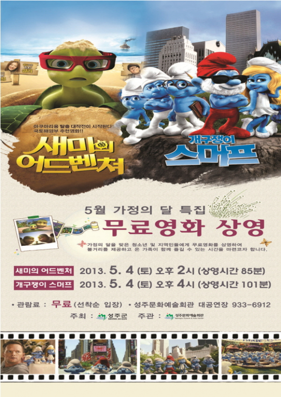 5월가정의달 특집 무료영화상영 “새미의 어드밴쳐”,“개구쟁이 스머프”