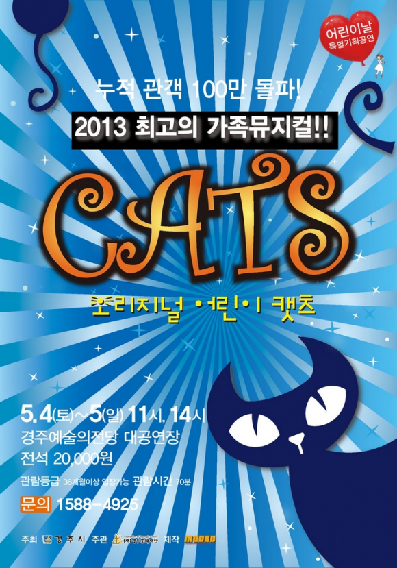경주시와 (재)경주문화재단은 제91회 어린이 날을 맞이해 4일, 5일 양일간 경주예술의전당 대공연장에서 오리지널 가족뮤지컬 <어린이 캣츠>를 개최한다.