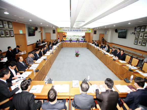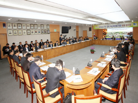 안동시(시장 권영세)와 김광림 국회의원실은 5월 2일 안동시청 대회의실에서 국회의원/도의원/시의원과 안동시장을 비롯한 부시장, 실국과장 등 50여명이 참석한 가운데「2014년 국비 예산확보를 위한 당정협의회」를 가졌다.