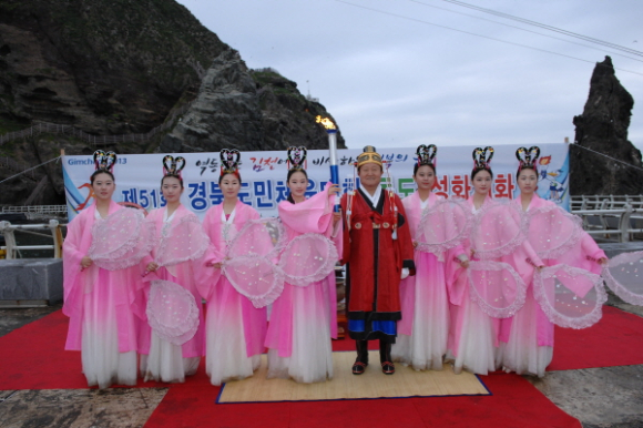 제51회 경북도민체전을 밝혀줄 3개의 성화 중 첫번째 성화가 우리나라에서 가장 먼저 해가 뜨는 최동단 민족의 섬 독도에서 5월 2일 채화됐다.