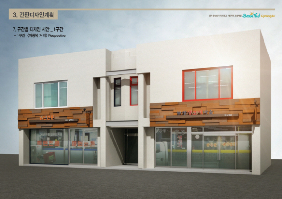2012년도 옥외광고물 및 공공디자인 우수기관 선정에 이어 이번 공모사업 선정으로 경주시는 정부지원금 3억원을 지원받게 되며 기존에 확보된 도비 5억원, 시비 10억원을 포함해 총사업비 18억원으로 경주 중심상가 구역내 500여개 업소 전체 간판을 교체해 간판시범거리로 조성할 계획이며 지역경제 활성화 및 간판문화의 선진도시로 탈바꿈할 기틀을 마련하게 되었다.