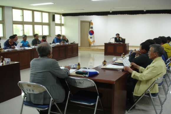 6일 오전 수륜면 각리 이장 25명이 모인 가운데 정기 이장회의를 면사무소에서 개최했다.
