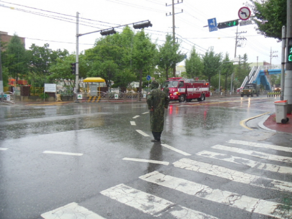 청명하던 하늘 먹구름 몰려와 빗줄기 우두둑우두둑..