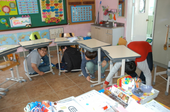 ‘2013 재난대응 안전한국훈련’시 특수학교의 지진대피 훈련을 집중 점검한다. 훈련기간(6~8일)중 1일차에 7개 특수학교의 교감들이 도교육청 상항실에서 지진발생시 학생 대피 및 안전확보 방안에 대한 과제발표와 토의형 훈련을 실시하였다. 또한 2일차에는 도교육청과 지역교육청 담당장학사들이 실제 대피 훈련을 점검하기 위해서 7개 특수학교를 방문했다. 이를 통해 재난이 발생했을 때 대피의 취약계층이라 할 수 있는 장애학생의 안전을 확보할 수 있는 방안을 수립하고 점검할 수 있는 계기가 되고 있다.
