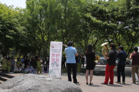 5월 8일(수) 오전 11시 첫 공연을 시작한 금관5중주단은 이날 두류공원 일대를 한 바퀴 돌면서 흑인영가 '놀라운 은혜(Amezing Grace)'와 영화 ‘록키’의 테마곡 'Gonna Fly now' 등을 퍼포먼스를 곁들여 선보였다.