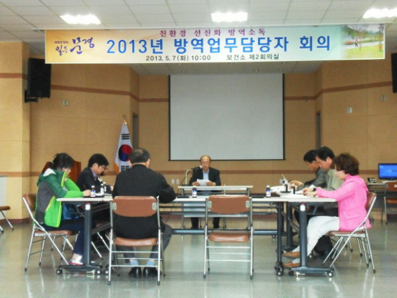 문경시보건소 관계자는 주요 감염병 매개 위생해충 구제사업을 효율적으로 실시하기 위한 2013년도 방역업무담당자 회의를 2013. 5. 7(화) 10:00 보건소 대회의실에서 개최했다.