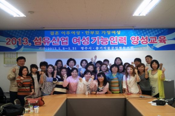 여성친화도시 영주시(시장 김주영)는 2012년 여성가족부가 공모한 여성친화도시조성 우수사업에 선정된 지역특화 섬유산업 여성기능인력 양성사업의 추진으로 다문화가정 결혼이주여성 및 한부모여성가장을 대상으로 4주간(5.8~5.31)의 직업능력개발 교육을 실시하고 있다.