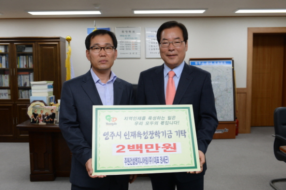 5월 9일 주원건설엔지니어링(주) 대표 권세근씨가 영주시인재육성장학회 이사장(김주영)을 방문하여 장학금으로 2백만원을 기탁했다.
