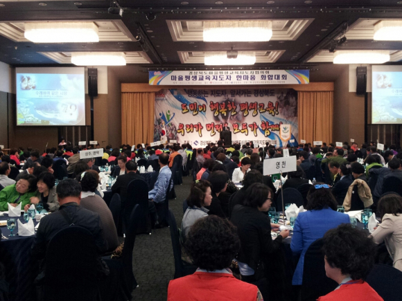 경상북도 마을평생교육지도자협의회(회장 정학진)는 마을평생교육 활성화를 위한 지도자의 역량강화 및 회원 간 화합을 도모하기 위해 『경상북도 평생교육 한마음 화합대회』를 10일 오전 11시, The-K경주호텔에서 도내 평생교육지도자 550여명이 참석한 가운데 개최했다.