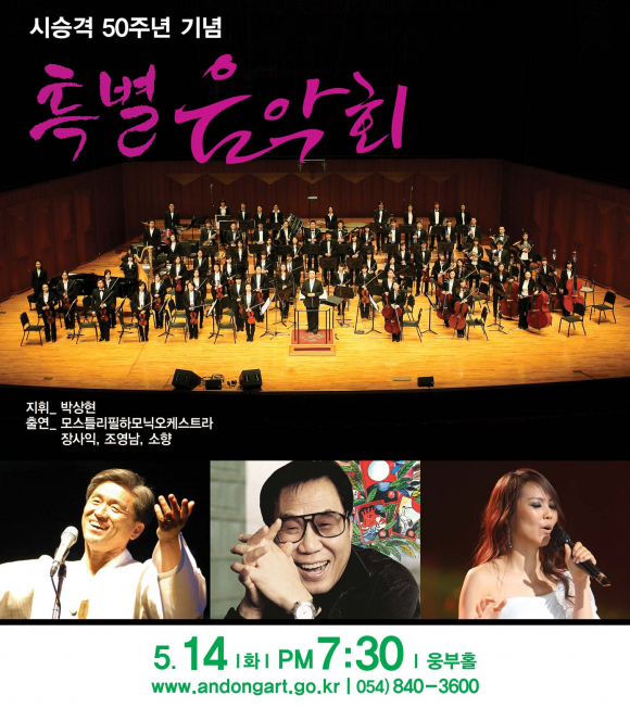 |  | | | ⓒ GBN 경북방송 | | 안동문화예술의전당(관장 하영일)에서는 올해로 시승격 50주년을 맞아 오는 14일 오후 7시30분 웅부홀에서 특별음악회를 연다.