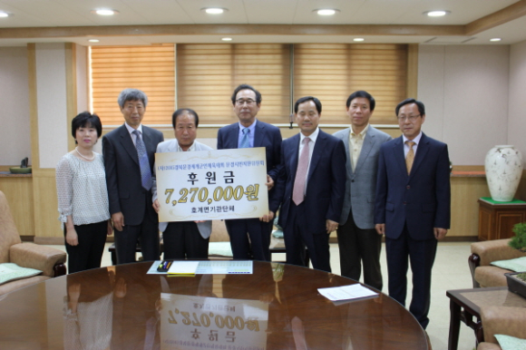 이날 후원금 전달식은 호계면 직원일동 50만원을 비롯, 류기오 전시의원 100만원, 호계면개발자문위원회 200만원, 이장자치회 100만원, 남여새마을협의회 100만원, 바르게살기위원회 20만원, 의용소방대 30만원, 자율방범대 20만원, 농업인단체 50만원, 농가주부모임 15만원, 여성자원봉사회 10만원, 호계초등학교직원일동 26만원, 점촌농협호계지점 26만원 등 총 747만원의 후원금을 대회 성공개최를 위해 써달라며 전달했다.