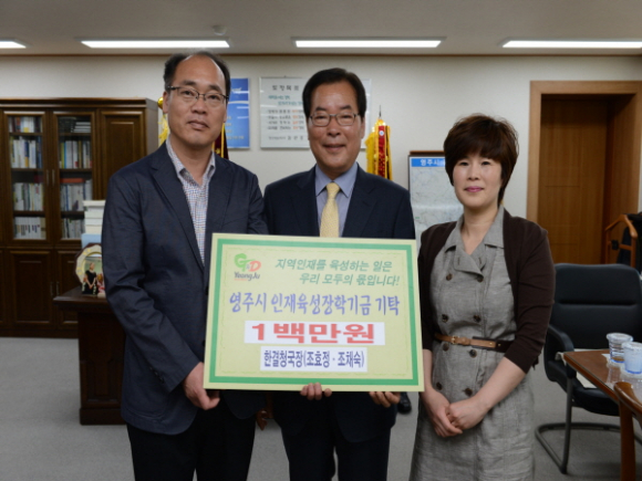 5월 13일 한결청국장(대표 조재봉)은 영주시인재육성장학회를 방문하여 1백만원의 장학금을 기탁했다. 이날 장학회를 방문한 대표 조재봉은 선비문화축제 향토음식경연대회 대상 시상금을 “인재육성을 위해 뜻 깊은 일에 쓰이기를 바란다며 흔쾌히 장학금을 기탁하였다”고 말했다.
