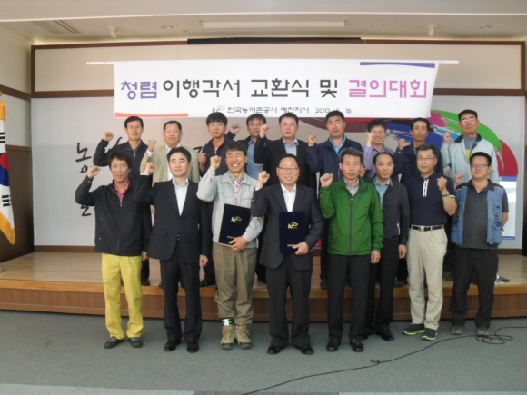한국농어촌공사 예천지사(지사장 홍병선)는 15일 지사 회의실에서 공사감독원 및 시공회사 관계자등 20여명이 참석한 가운데 공사감독 업무 이행의 공정성과 투명성 확보를 위한 『청렴 이행각서 교환식』을 실시하고 품질관리교육 및 현안사항에 대해 토의했다.