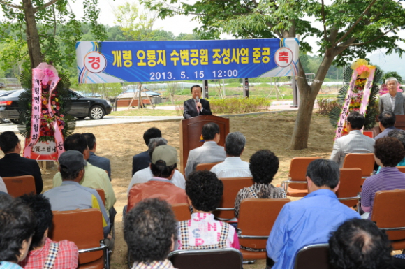 김천시는 개령면 신룡리 오룡지 수변공원 조성공사가 마무리되어 지난 15일 주민들이 참석한 가운데 성대히 준공식을 치렀다.