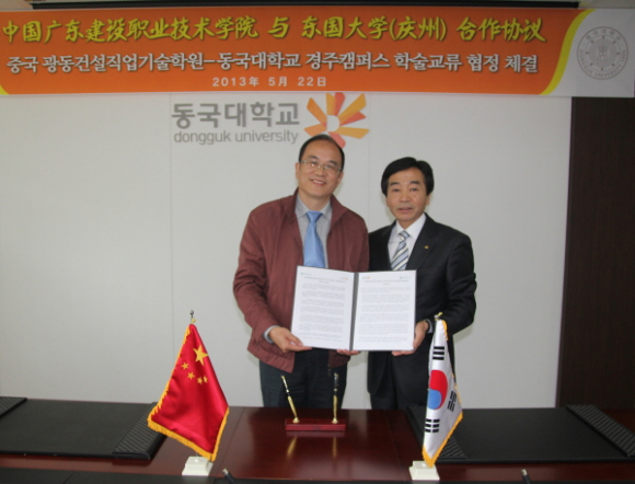 동국대학교 경주캠퍼스(총장 이계영)는 중국 광동건설직업기술학원(원장 황락람)과 지난 22일 오전 10시에 교내 백주년기념관에서 상호 교류협력을 위한 협정을 체결했다.