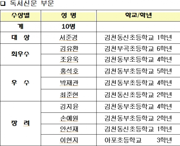 김천시, 가족경제·독서신문 공모전 수상자 발표