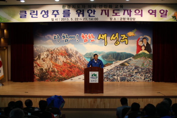 이번 교육은 지난 1월 24일 성주군과 MOU를 체결한 경상북도 환경연수원이 주관, 환경분야의 최고의 전문가들로 초빙된 강사진에 의해 ‘Clean 성주를 위한 지도자의 역할’ 이라는 주제로 열렸다.